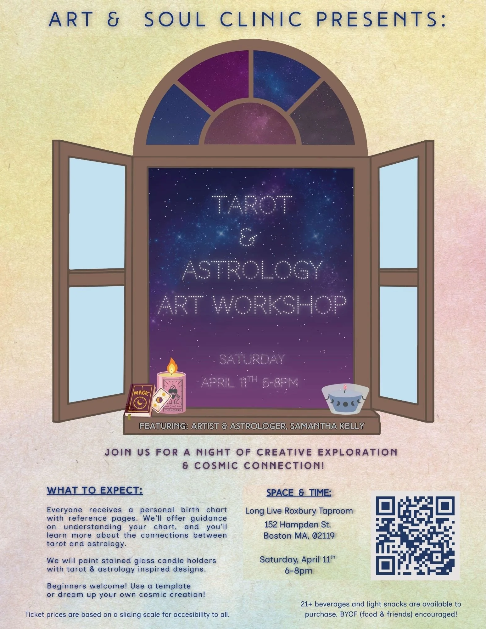 This workshop offers a casual atmosphere to learn about the connections between tarot and astrology. We will paint magically inspired stained glass candle holders.
