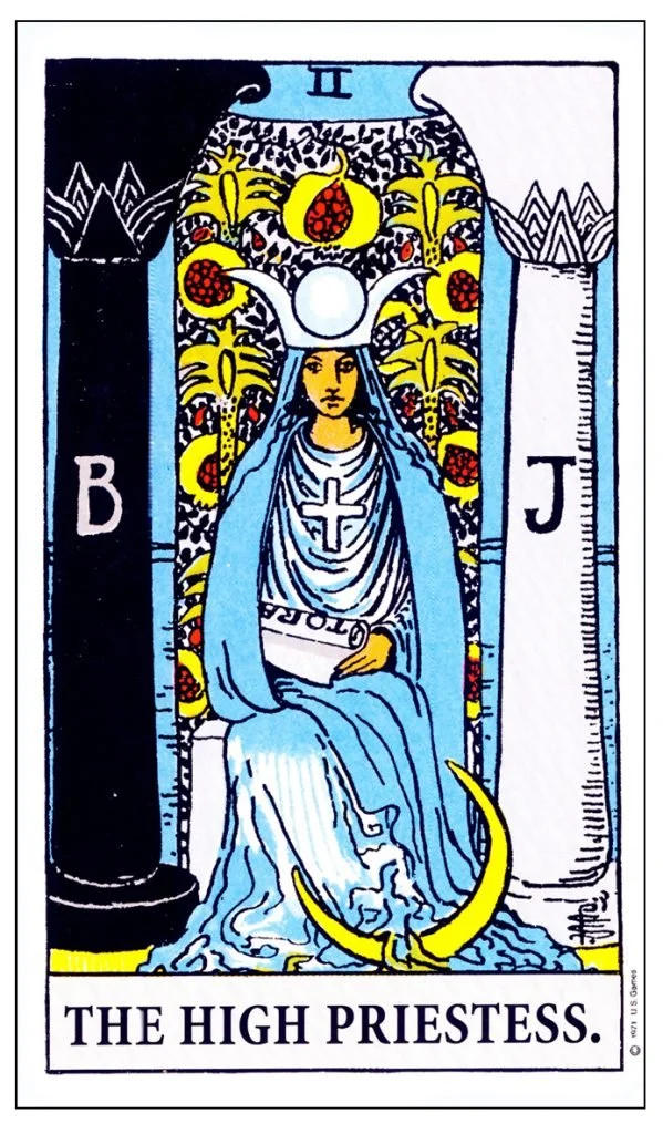 The High Priestess embodies spiritual wisdom and, like the healer, possesses strong emotional acuity. She is deeply attuned to the energy surrounding her. Seated on her throne at the portal between darkness and light, she observes circumstances as they unfold, holding them as neutral events rather than taking them on personally. Her wisdom spans lifetimes, allowing her to perceive the transmission from the ancient to the modern. Like the healer, the High Priestess offers a calming presence that supports reflection, tending to unseen wounds and guiding others toward their own awakening.