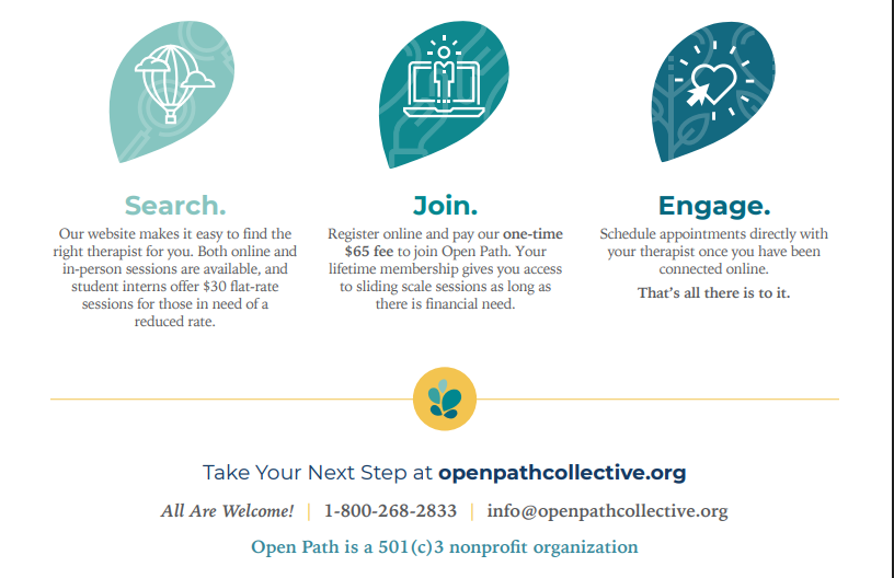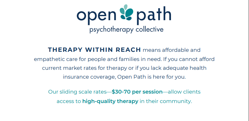Art & Soul Clinic is partnered with Open Path Psychotherapy Collective to accept discounted, sliding-scale rates for Art & Soul Clinic’s creative healing sessions for individuals.